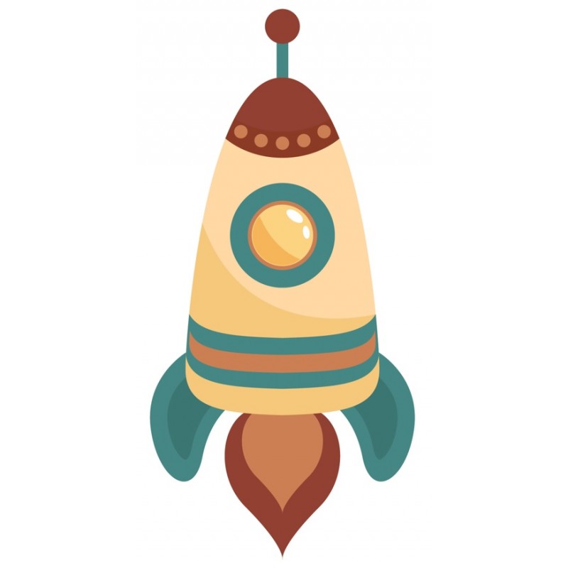 Sticker fusée jaune flamme marron pour la déco de la chambre de bébé.