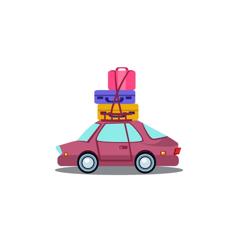 Sticker voiture rose valises toit pour la déco de la chambre de bébé.